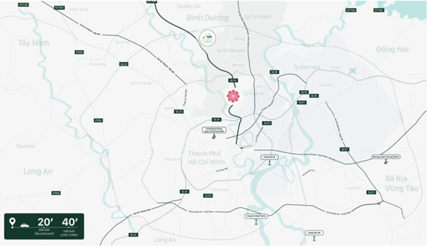 Dự án Setia Edenia có vị trí nổi bật do nằm ngay trung tâm huyện Lái Thiêu, tỉnh Bình Dương – một khu vực đang phát triển nhanh chóng về cơ sở hạ tầng và nhà ở. Vị trí này giáp với nhiều tuyến đường lớn, giúp cư dân dễ dàng kết nối với TP. Hồ Chí Minh thông qua các tuyến đường trọng điểm như Quốc lộ 13 và đường Võ Văn Vân, cùng các tuyến đường huyết mạch khác trong khu vực. Nhờ đó, cư dân có thể di chuyển thuận tiện đến trung tâm thành phố, các khu công nghiệp, sân bay Long Thành, và các tỉnh lân cận ở khu vực miền Đông Nam Bộ.