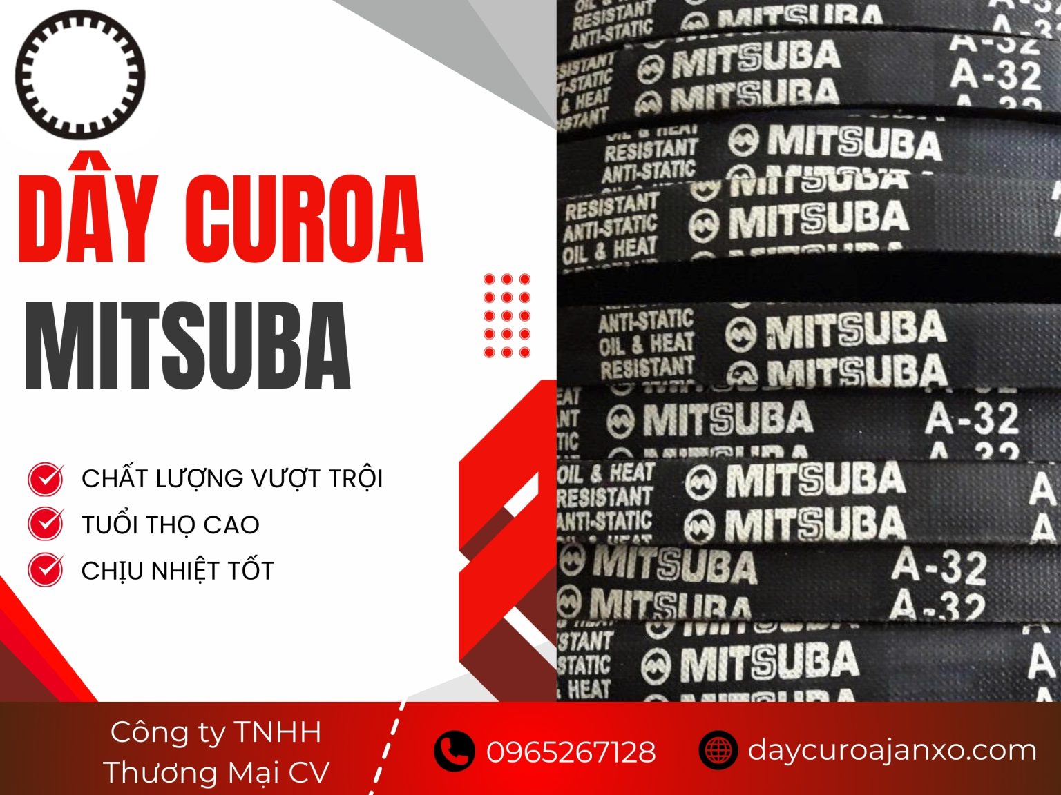Ngày nay, khi máy móc, thiết bị sản xuất trở thành trụ cột trong hoạt động vận hành của các doanh nghiệp, yếu tố ổn định, bền bỉ và chi phí bảo trì thấp là tiêu chí hàng đầu để lựa chọn linh kiện truyền động. Trong số các linh kiện truyền lực, dây curoa luôn chiếm vị trí quan trọng vì vai trò truyền công suất giữa động cơ và hệ thống máy móc. Trong nhiều năm qua, các khách hàng doanh nghiệp đã ngày càng tin tưởng lựa chọn dây curoa Mitsuba qua kênh phân phối của Công ty TNHH Thương Mại CV. Bài viết này sẽ giới thiệu chi tiết lý do đằng sau uy tín đó và vì sao bạn nên cân nhắc hợp tác với công ty này khi cần cung cấp dây curoa Mitsuba cho hệ thống sản xuất của doanh nghiệp mình.