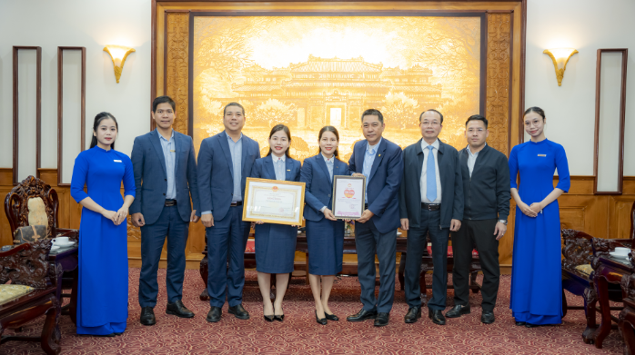 Đại diện Ngân hàng TMCP Quân đội nhận bằng khen của Chủ tịch UBND thành phố Huế và Chứng nhận “Tấm lòng vàng” của Ủy ban MTTQ Việt Nam TP Huế